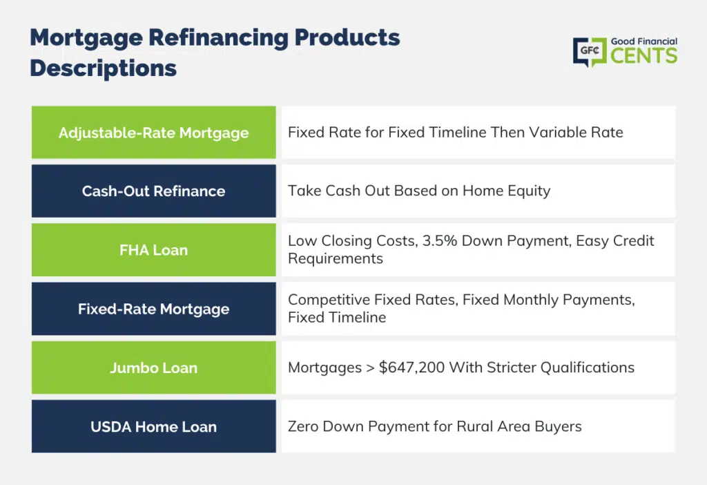 When it comes to refinancing your home mortgage, you get to choose from nearly any type of mortgage out there. Generally speaking, your options can include the following: