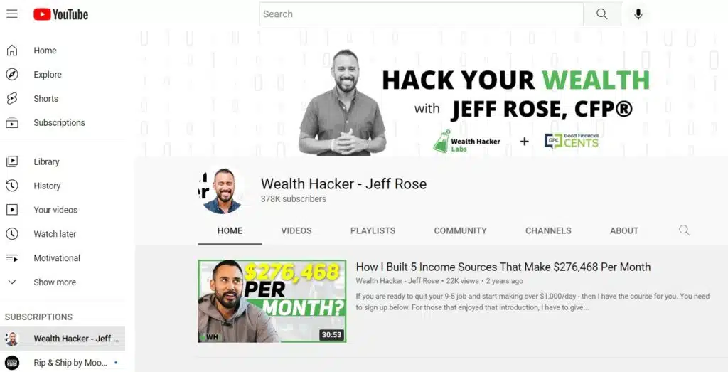 If you’re wondering how to make money on YouTube, my Wealth Hacker channel is a good example: