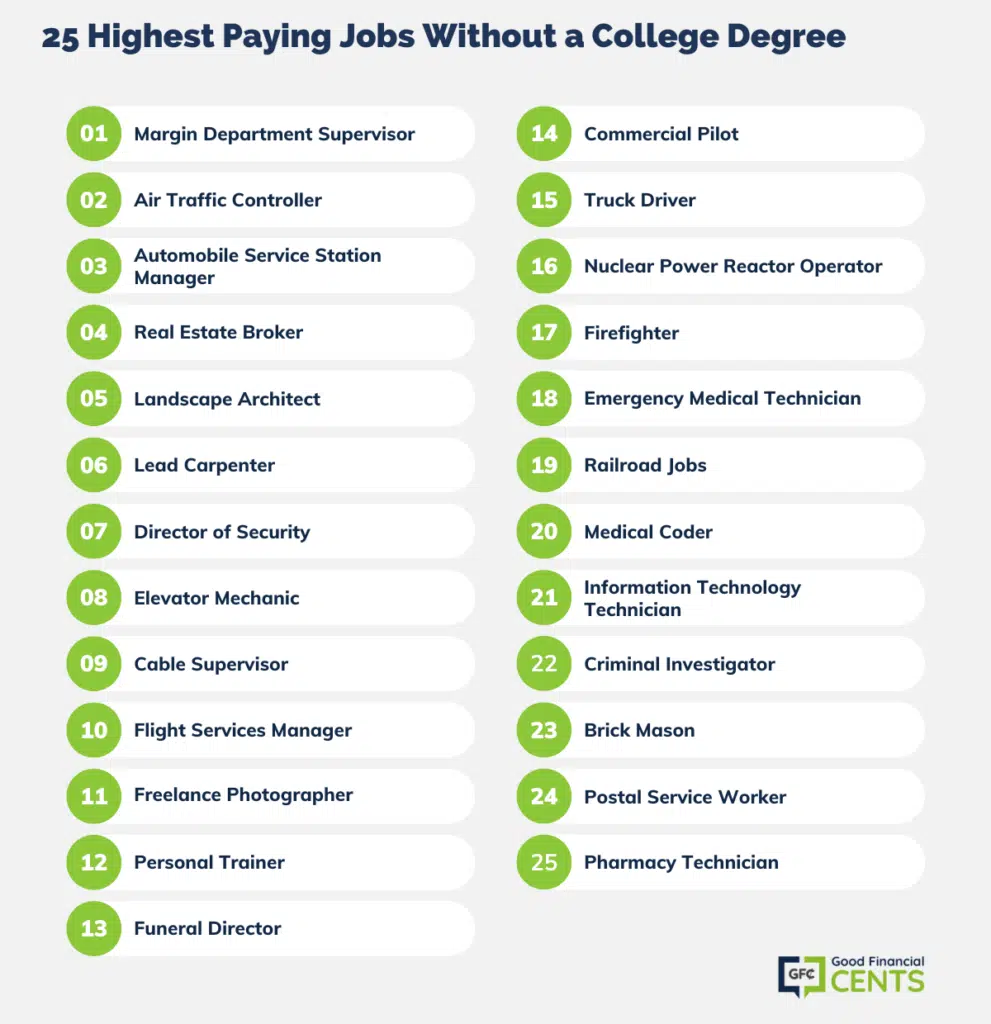 If you have decided to not attend a four-year college right out of high school, or are looking for a fresh start on a new career path, 25 of the highest-paying careers with virtually no degree are featured below.