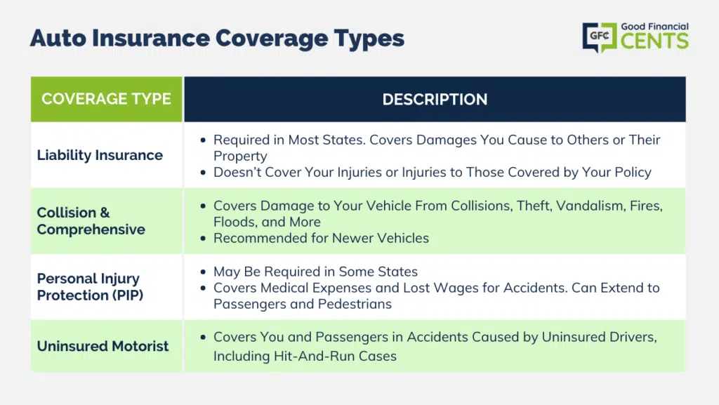 In addition to liability coverage, auto insurance policies can also cover collision and comprehensive damage.